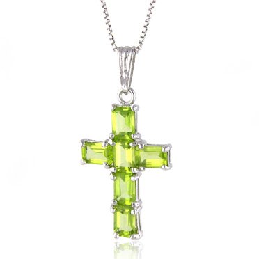 This is a must have piece. Crafted in Sterling Silver, it features six 6X4 genuine emerald cut Peridot gemstones. The gemstones have all been chosen for their excellent tone, hue, and saturation. The total approximate weight of this piece is 4 grams. Included is a lovely 18 inch Silver box chain. Enjoy! Netaya Style# 5SBC01P/18