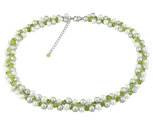 Sterling Silver, Freshwater Cultured Pearl and Peridot Necklace, 15-17"