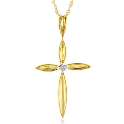 Inspirational diamond cross pendant. This exquisite piece has 1 round diamonds set in 10K yellow gold. An 18" French wheat chain is included. Netaya Style# 2EK5185D/18