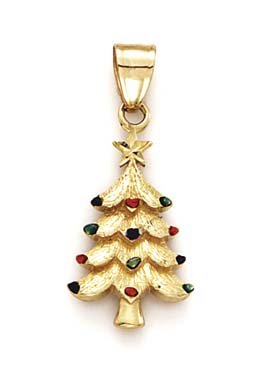 14k Enamel Christmas Tree Pendant - 1.4 Grams in 14k Yellow Gold - 1/2 inch wide x 1 1/4 inch long - FREE gift-ready jewelry box