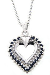 Sterling Silver 1/4 CT TW Genuine Diamond and Sapphire Heart Pendant.