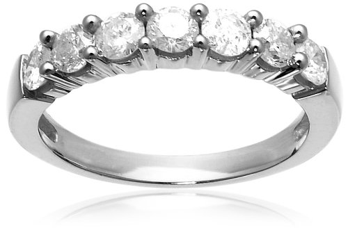 10k White or Yellow Gold Round 7-Stone Ring (1 cttw, H-I Color, I2-I3 Clarity). Seven round diamonds lend their bright sparkle to this lovely ring, made from 10 karat gold. The diamonds have a total weight of one full carat and are held securely in shared prong settings.