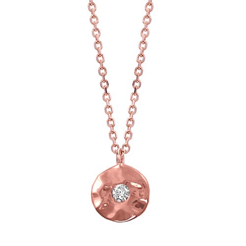 14k Rose Gold Diamond Sequin Pendant (.03 cttw, J Color, I2 Clarity), 16", Metal stamp: 14k