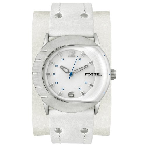 Fossil Midsize Round Stainless Steel White Cuff Watch #JR9765. The stark white color and rugged yet chic look of Fossil's Stainless Steel White Cuff Watch for men makes it the perfect accessory for your favorite going-out ensemble.