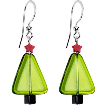 Handcrafted Holiday Christmas Tree Earrings. Festive holiday earrings designed with sterling silver earwires for pierced ears. Christmas tree earrings make a great holiday gift for all ages.