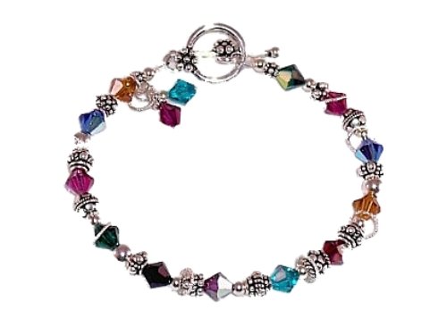 Single Strand Jewel Tone Swarovski Crystal Bracelet. This jewel tone, Swarovski crystal bracelet has sterling silver floating rings and handmade sterling beads. This bracelet measures 7 1/2" and is perfect for all of the neutrals in your wardrobe.
