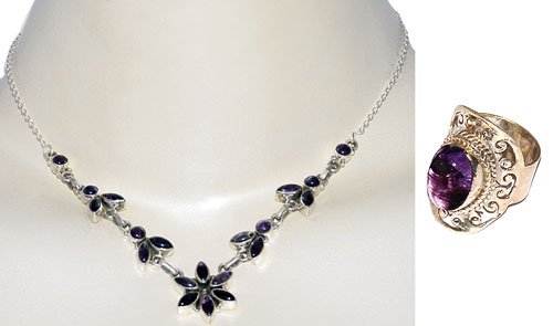 Valentine Jewelry Silver Amethyst Necklace Ring Sets. Jewelry set of necklace and ring in matching designs are worn by Indian city women as casual wear. There is no part of India where women are not decked with jewelry set from head to toe.