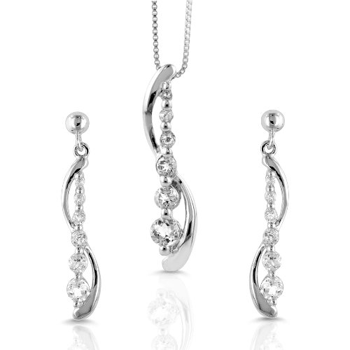 Sterling Silver Journey Set(Pendant and Earrings) w/ Created White Sapphire. Add a touch of class to any outfit with this elegant journey pendant and earring set, featuring shimmering created white sapphire set in sterling silver.